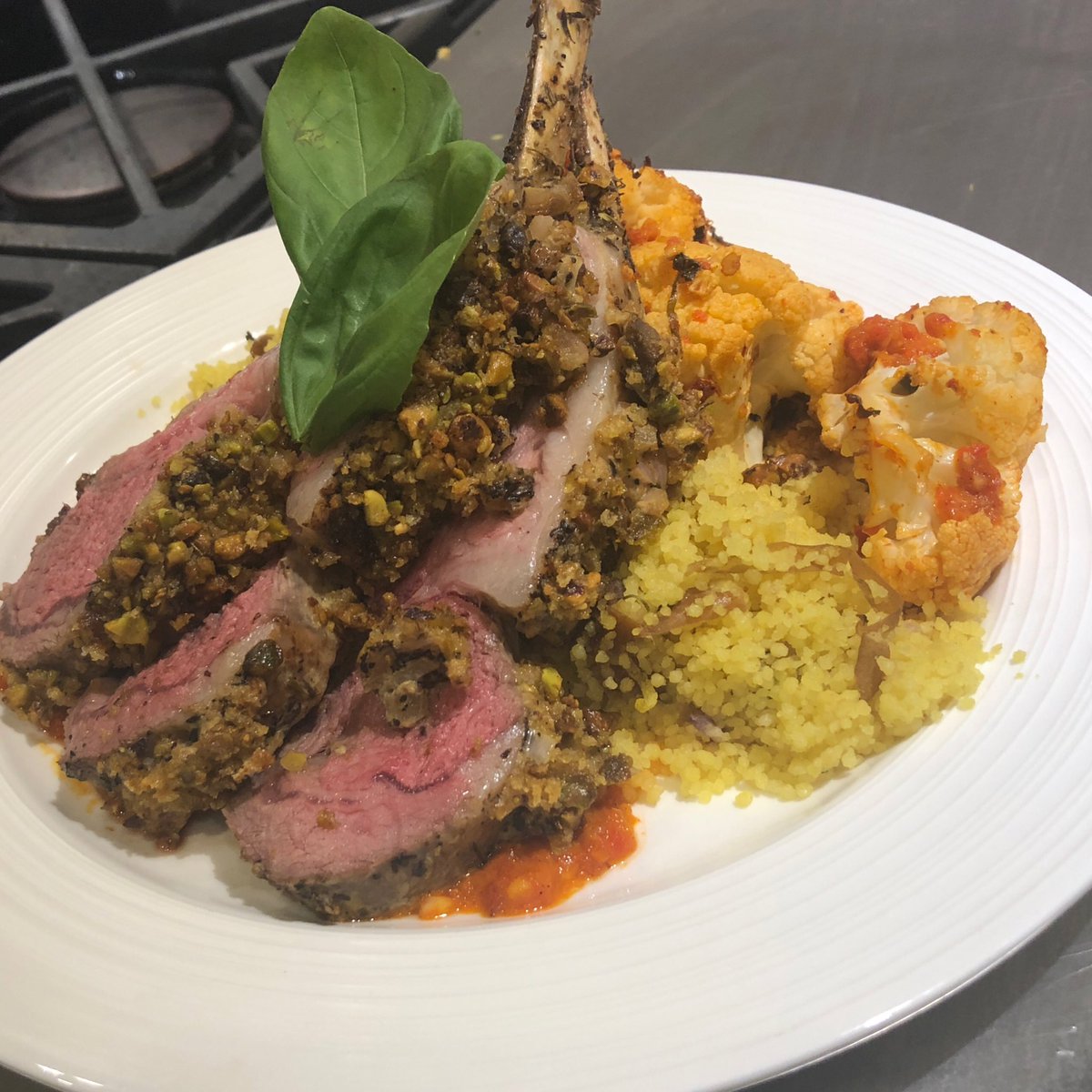 Serve the lamb and couscous with the vinaigrette.